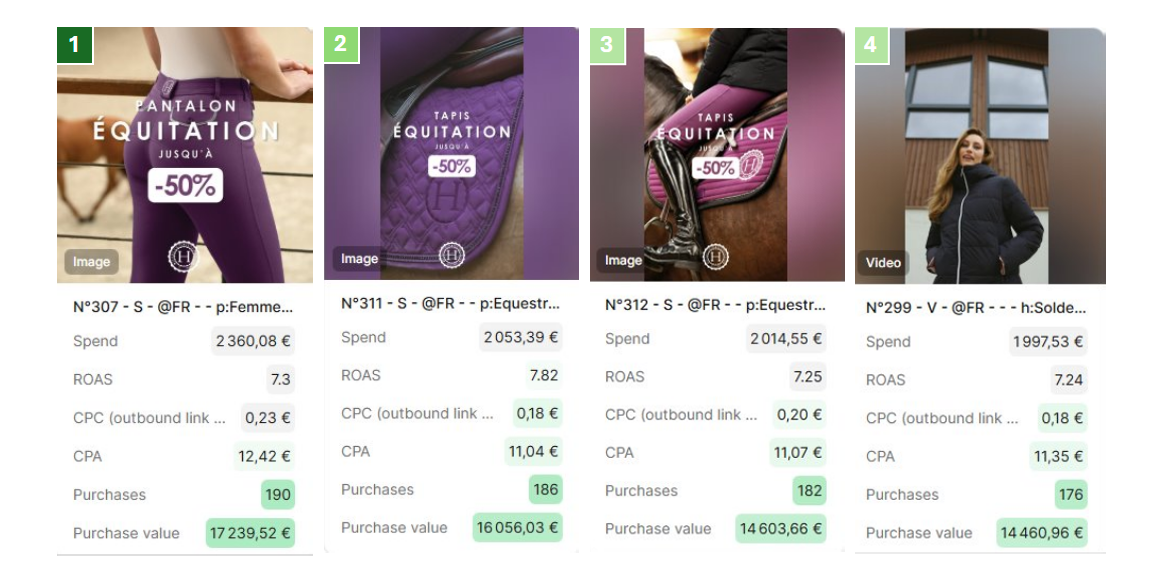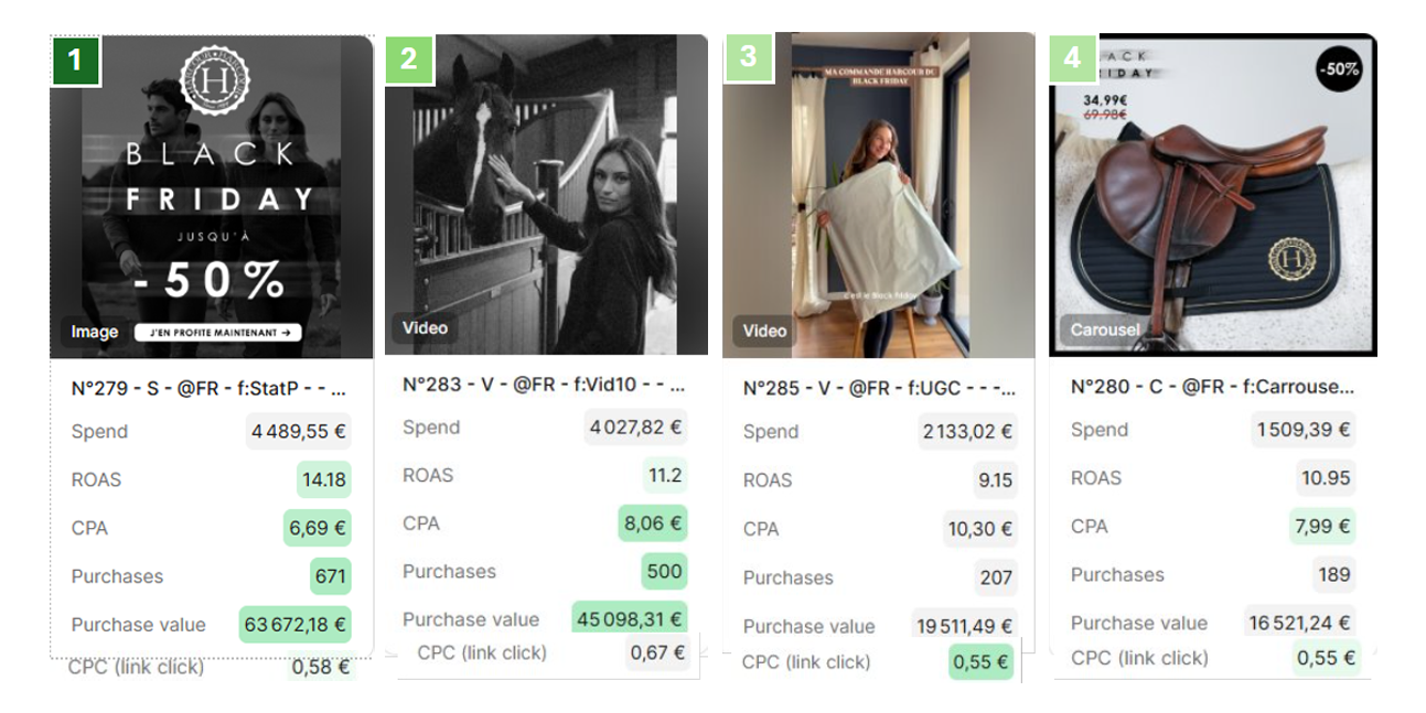 Chez Harcour, j’ai d’abord collaboré avec l’agence Coudac sur la gestion des campagnes, avant de reprendre progressivement la main sur l’optimisation créative et la performance.J’ai notamment mis en place une logique d’A/B test systématique sur les hooks, les formats et les messages publicitaires, ainsi qu’un retravail continu des adcopies, afin d’améliorer l’engagement et la rentabilité des campagnes.Cette approche m’a permis d’installer une méthode de travail structurée, orientée test, analyse et itération.Ci-dessous, vous retrouverez les principales opérations commerciales sur lesquelles j’ai travaillé :